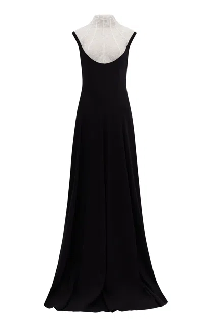 Steorra Flared-sleeve Polka-dot Silk Maxi Dress In Black
