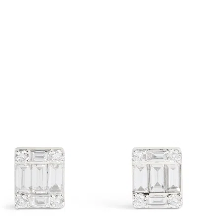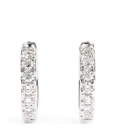 Medium White Gold And Diamond Hoop Earrings In Metallic