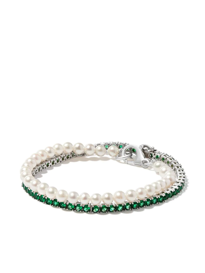 Sterling Silver Freshwater Pearl And Crystal Bracelet In White