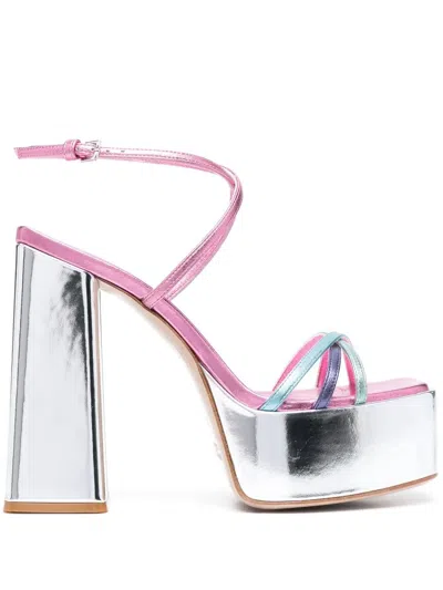 Metallic Leather Ankle Strap Sandals With Heel 14cm In Multi