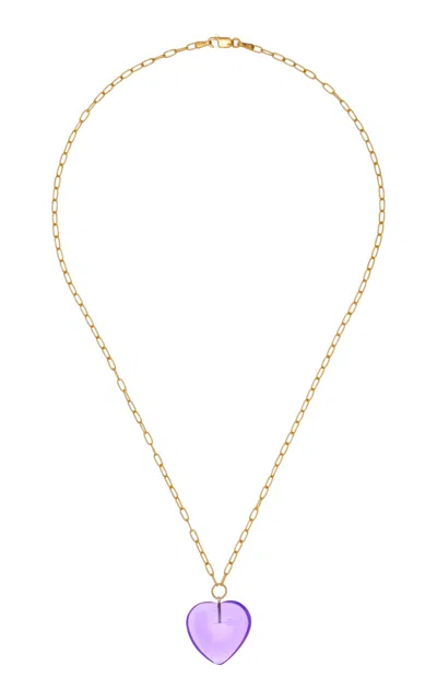 14k Yellow Gold Amethyst Heart Necklace In Purple