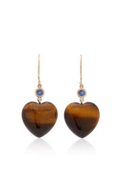 14k Yellow Gold Tiger's Eye; Sapphire Earrings In Brown