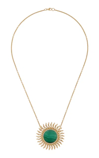 18k Yellow Gold Malachite And Diamond Solar Necklace In Green