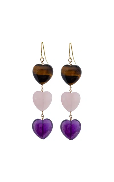 14k Yellow Gold Quartz; Tsavorite Earrings In Pink