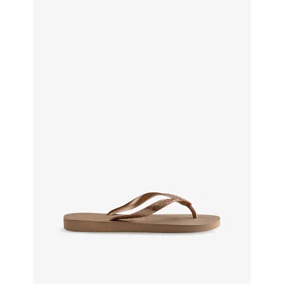Womens Rose Gold Top Tiras Metallic Rubber Flip-flops
