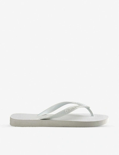 Womens Black Slim Flatform Glitter-strap Rubber Flip-flops