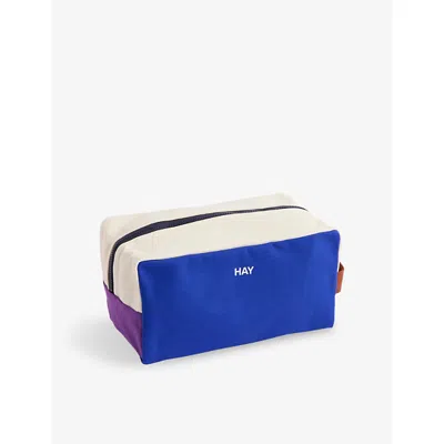 Womens Electric Blue Multi Branded Colour-block Cotton Wash Bag