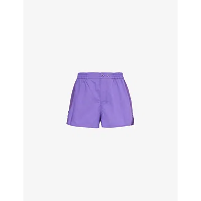Womens Vivid Purple Outline Relaxed-fit Mid-rise Cotton Pyjama Shorts