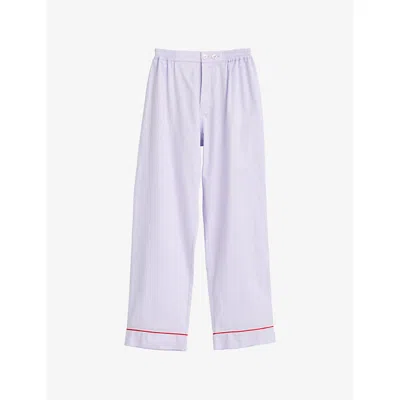 Womens Lavender Outline Contrast-piping Cotton Pyjama Trousers In White