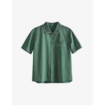 Womens Emerald Green Outline Contrast-trim Organic-cotton Pyjama Shirt