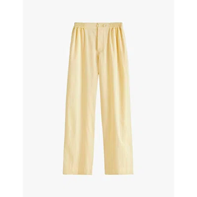 Womens Soft Yellow Outline Contrast-trim Organic-cotton Pyjama Trousers