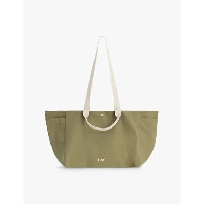 Womens Brand-embroidery Organic-cotton Weekend Bag Olive