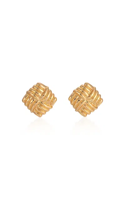 Womens Hive Yellow-gold Plated Metal Stud Earrings