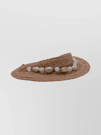 Beige Hat With Band With Logo Lettering In Straw Woman In Brown