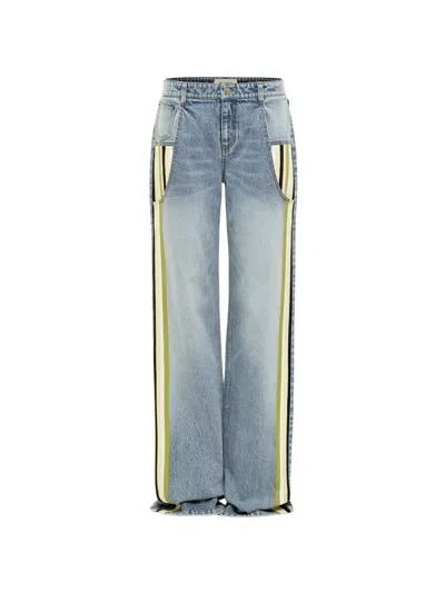 LIBBY 丝绒条纹蝴蝶结细节牛仔裤