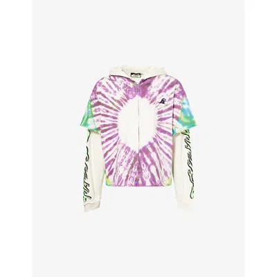 Mens Tie-dye Brand-embroidery Cotton-jersey Hoody Multi