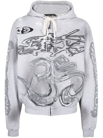 Mens White Graphic-print Relaxed-fit Cotton-jersey Hoody