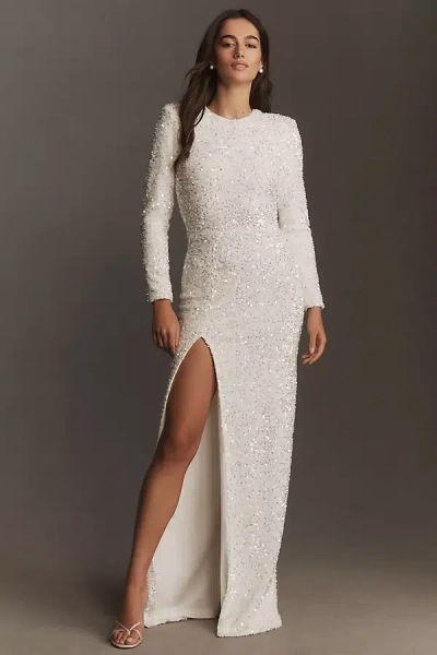 Quinn Long-sleeve Open-back Sequin Maxi Dress In White