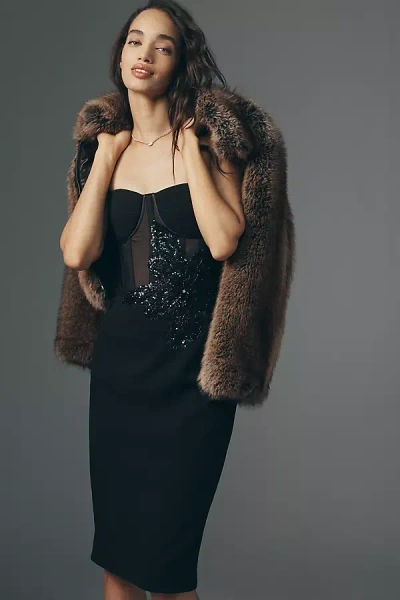 Stella 3d Floral Strapless Bustier Midi Dress In Black