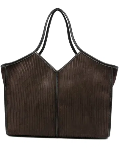 Calella Squared Medium Corduroy Suede Bags In Brown