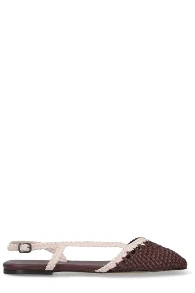 Braided Handle Shoulder Bag With Long Strap In Brown