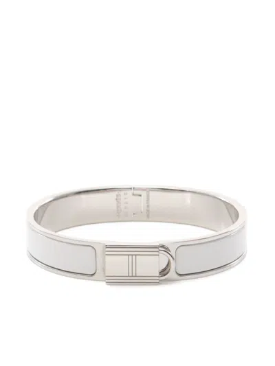 Pre-owned Enamel Narrow Clic H Bracelet Rose Gold Blanc In Default Title