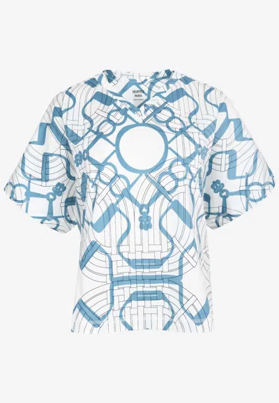 Lettres Equestres Print Silk Shirt In Jaune Gingembre