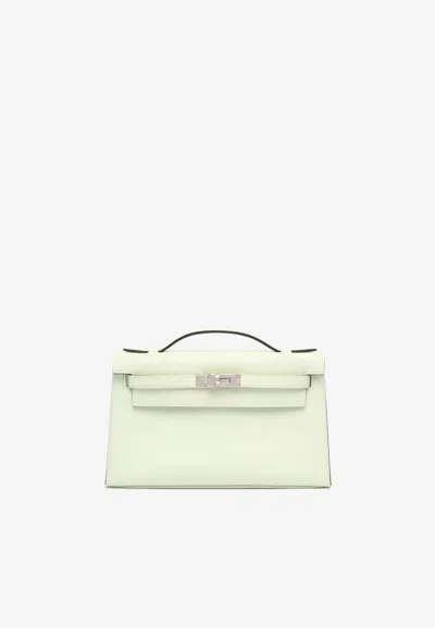 Kelly Pochette Clutch Bag In Vert Fizz Swift With Palladium Hardware