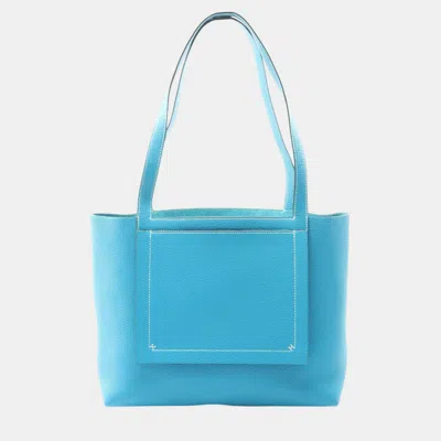 Pre-owned Azur Togo Steve Light Messenger Bag In Blue