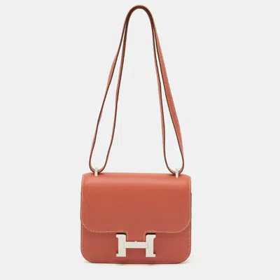 Pre-owned Sanguine Swift Leather Palladium Finish Constance 18 Mini Bag In Orange