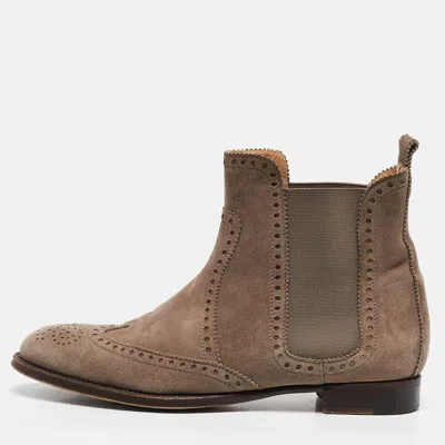 Pre-owned Grey Suede Brighton Low Ankle Boots Size Size 37