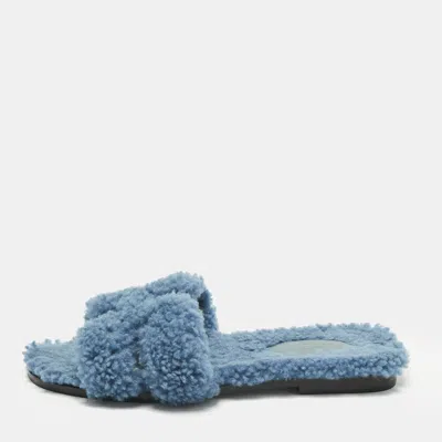 Pre-owned Blue Shearling Fur Oran Flat Slides Size 37.5