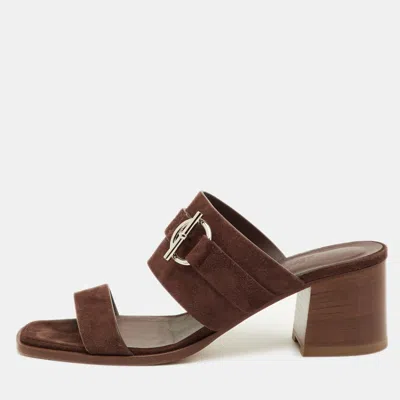 Pre-owned Kute Size 39.5 Brown Suede Block Heel Slide Sandals