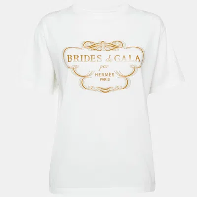 Pre-owned Hermès White Printed Cotton Crew Neck T-shirt M