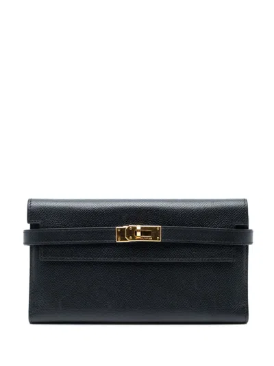 Pre-owned Kelly Wallet Long To Go Black Chevre Shamqila