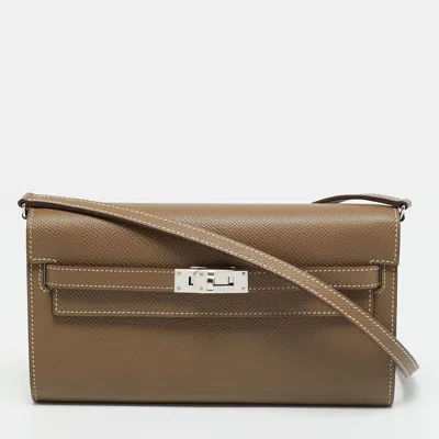 Pre-owned Hermès Kelly To Go Taupe Epsom Leather Wallet In Gray