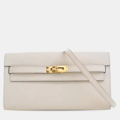 Pre-owned White Epsom Kelly To Go Wallet