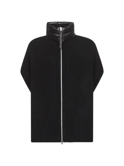 Black Knit And Ultralight Nylon Resort Poncho<br/>