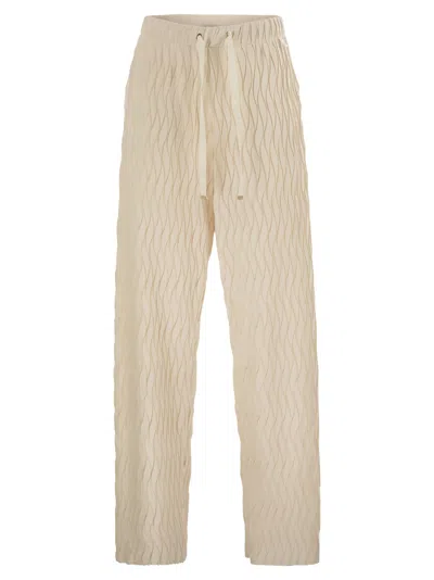 Trousers With Crumpled Effect And Wavy Pattern In Neutral