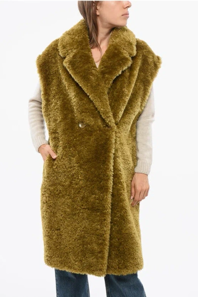Eco-fur Sleeveless Coat With Double-breasted Design In Green