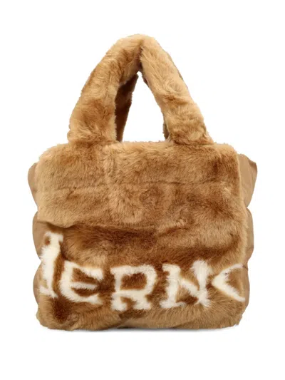 绗缝人造皮草中号手提包
