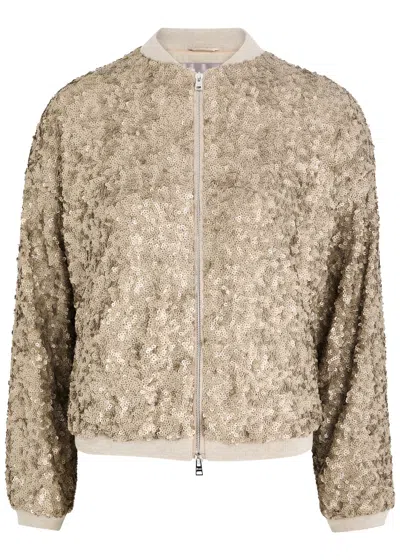 Hooded Drawstring Knitted Bomber Jacket In Brown