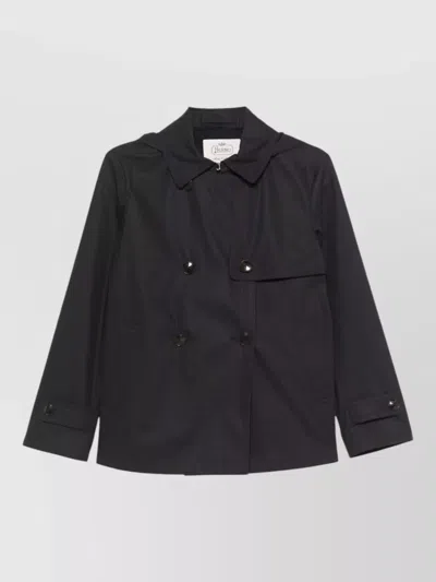 Hooded Double Breasted Raincoat Storm Flap In Black