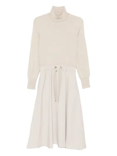 Women Maxi Beige Dress With Drawstring In Stretch Polyamide Woman In Brown