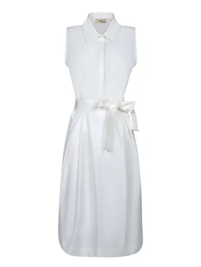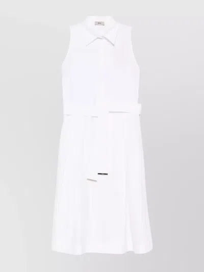 White Sleeveless Dress With Classic Collar And Adjustable Belt In Tech Fabric Stretch Woman