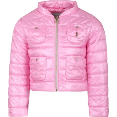 Kids' Pink Down Jacket For Girl With Logo