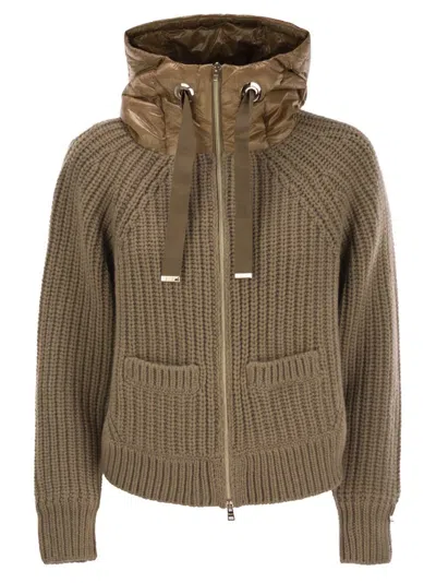 Hooded Drawstring Knitted Bomber Jacket In Brown