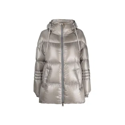 Hooded Quilted Down Jacket And Pockets In Neutral