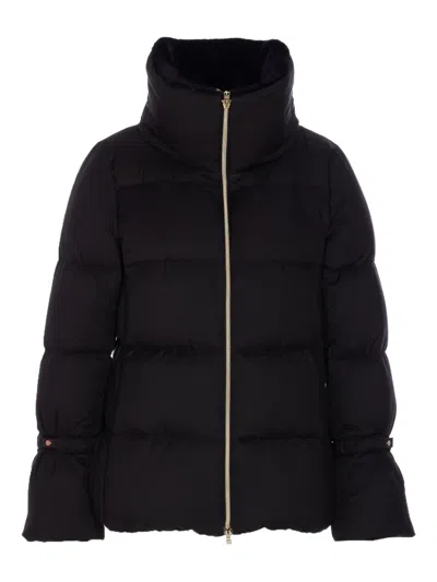 Down-feather Mid-length Coat In Black