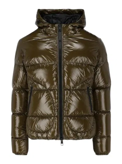 Down Jacket With Hood And Side Zipper Pockets In Black